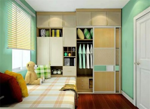 衣柜的柜門一般有兩種選擇:推拉門或者平開門,這要根據(jù)臥室的面積來決定。