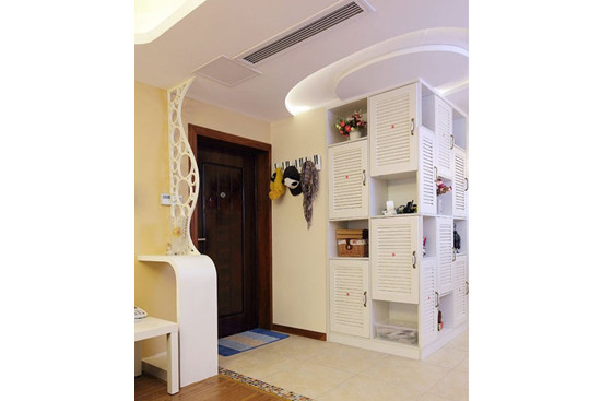 眾多或開放或關(guān)閉的玄關(guān)格是這個(gè)玄關(guān)不錯(cuò)的亮點(diǎn),開放和封閉相同的設(shè)計(jì)很好的提供了裝飾和收納兩個(gè)功能,無(wú)論是綠色植物還是家中雜物都有了不錯(cuò)的安放之地。