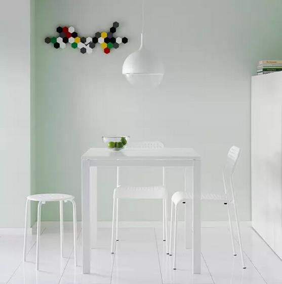 地板與墻壁都是給人極簡感覺的白色,甚至于餐桌和吊燈都是白色,全部家具與房子融于一體,視覺極大化!