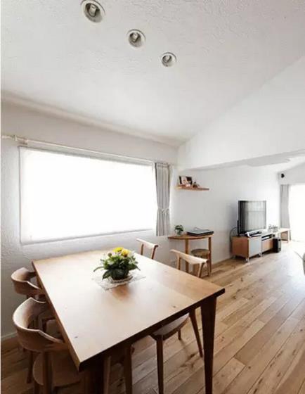 2、 百搭木地板戶型小——采光要好,搭配光面淡黃木地板,散射更顯空間大。