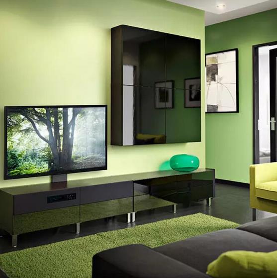 地板雖然選擇了暗沉的灰黑色,但是墻身卻大膽的使用了草綠色,還聰明的鋪上綠地毯,有那么一種錯覺在森林里。