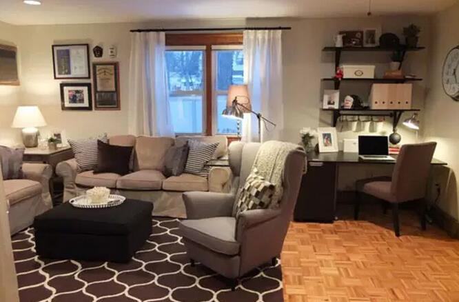 高級玩法,通過不同地板區(qū)分客廳與書房,混搭有風險,使用需謹慎。