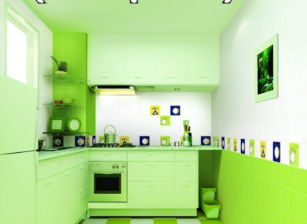 4、廚房鮮艷的黃、紅、藍(lán)及綠色都是快樂(lè)的廚房顏色,而廚房的顏色越多,家庭主婦便會(huì)覺(jué)得時(shí)間越容易打發(fā)。乳白色的廚房看上去清潔衛(wèi)生,但是別讓帶綠色的黃色出現(xiàn)。