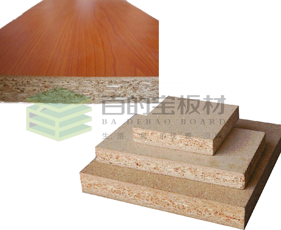 好的刨花板其顆粒經過靜電吸附排列,大的顆粒在板芯部分,小的顆粒在板材兩面部分,從斷面可以看到木材顆粒越往中間越粗,這樣的結構使刨花板的張力很好,不易翹曲形變。