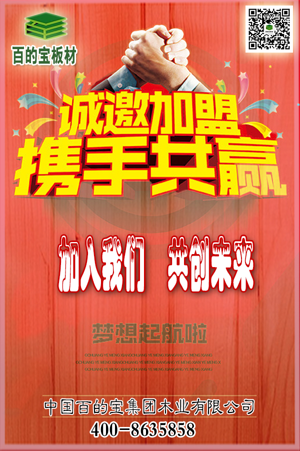 面對嶄新的2017年,百的寶板材為了更好的服務(wù)于客戶,加大力度面向全國空白區(qū)域招商,送訂單返利潤、送裝修補(bǔ)助款等優(yōu)惠加盟政策在等著您。