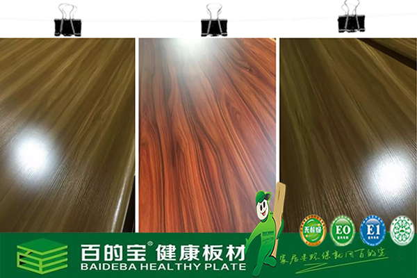 板材品牌百的寶免漆飾面板表面色澤飽滿、色彩亮麗 百的寶免漆飾面板在制作飾面層時(shí),采用的原紙重量至少在80g/平方米以上,油墨也是進(jìn)口高端品牌,從而確保最終印制出來的裝飾紙張,色澤艷麗飽滿,視覺效果好。