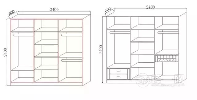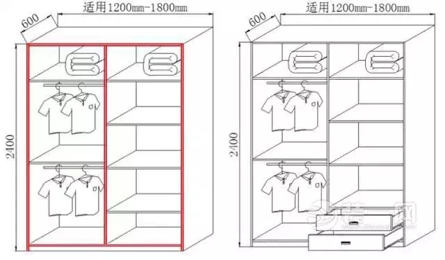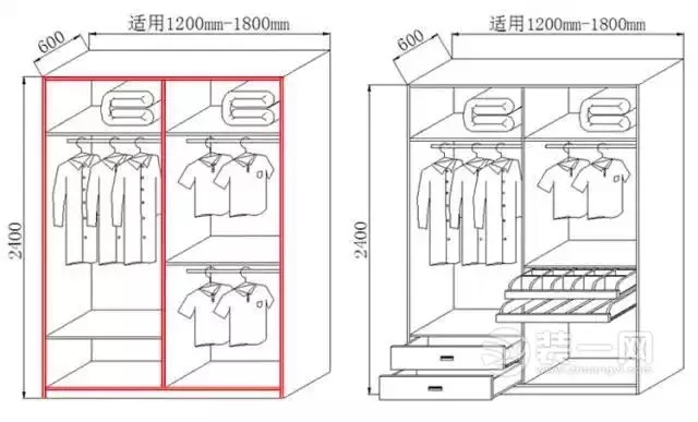 一般需要將衣柜左右兩邊分別設(shè)置成男女方各自的儲衣空間。
